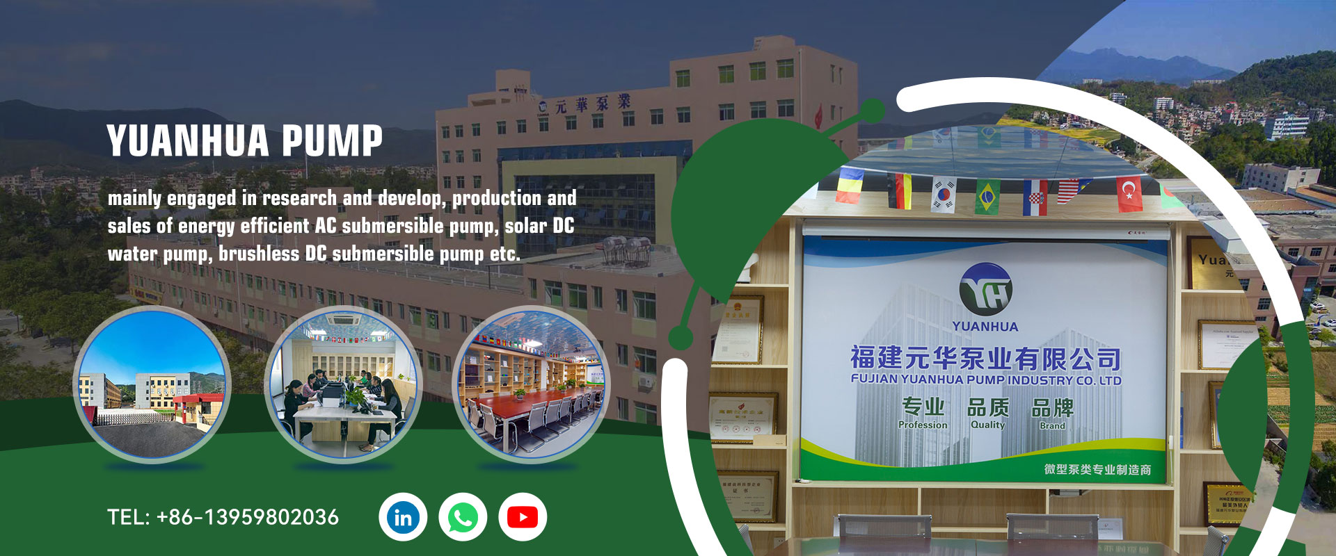Nyní se však dceřiná společnost – YUANHUA zabývá především výzkumem a vývojem, výrobou a prodejem energeticky účinných ponorných čerpadel na střídavý proud, solárních vodních čerpadel na stejnosměrný proud, bezkartáčových ponorných čerpadel na stejnosměrný proud atd. Naše výrobky jsou široce používány v řemeslných fontánách, zahradních krajinných oblastech, zavlažování zahrad, automobilech, zařízeních pro automatickou cirkulaci vody, solárních produktech (fontána na koupání ptáků), akvarijních akváriích, ochlazovačích nohou. Navíc přidáváme nové produkty jako vypouštěcí čerpadlo pro pračku a RO čerpadlo pro čističku vody.